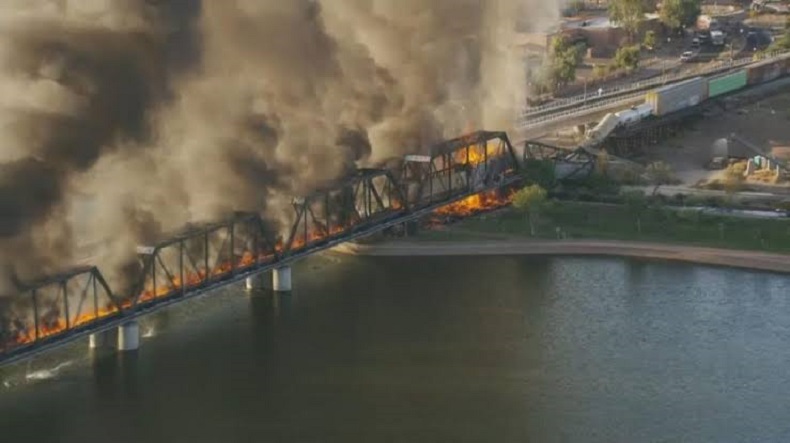 Товарен влак падна от мост в град Темпи в щата Аризона. Мостът рухнал, докато композицията преминавала по него.