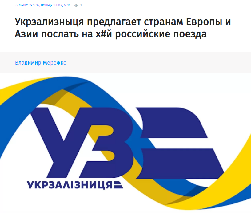 "Руснако, ти вече не можеш никъде да летиш, а сега няма да можеш и никъде да пътуваш. Призоваваме железопътните компании на всички страни, граничещи с Руската федерация,да прекратят товарните и пътническите жп комуникации с тази страна. Също призоваваме да се прекрати всякакво взаимодействие между жп системите и да бъдат изключени Руските железници (РЖД) от международните организации", се казва в съобщението.