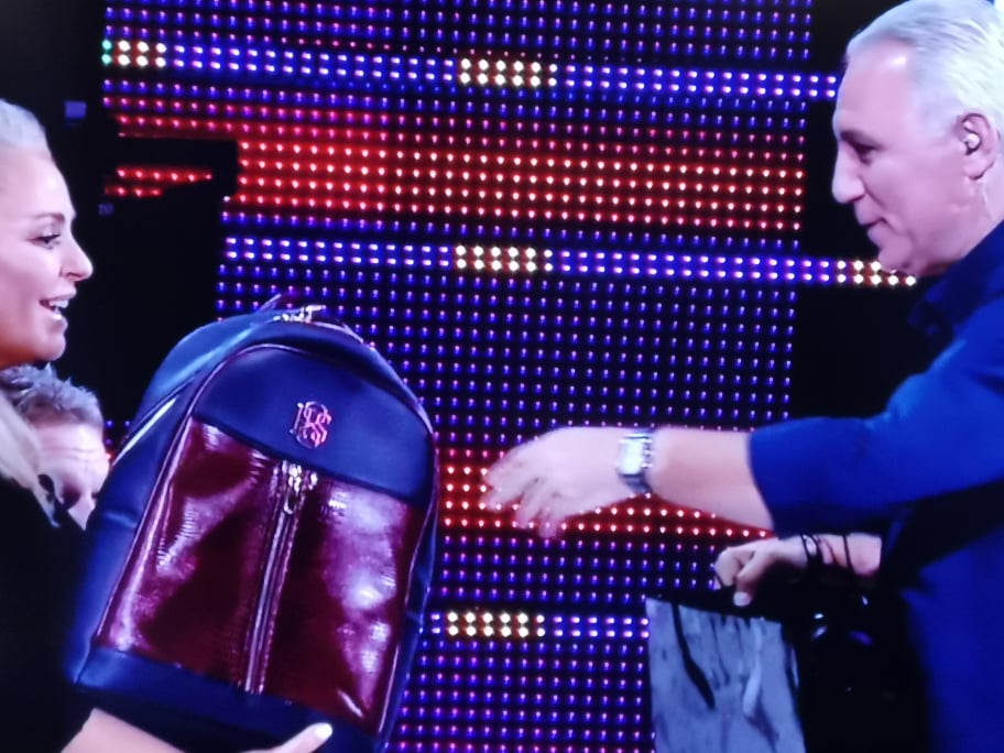 Стоичков подмина неуместната шега, но настана суматоха, след като извади торбите с подаръци. Първият дар бе за Хилда Казасян - луксозна раница от бранда на Камата. "Аз винаги съм подготвен", каза Стоичков.