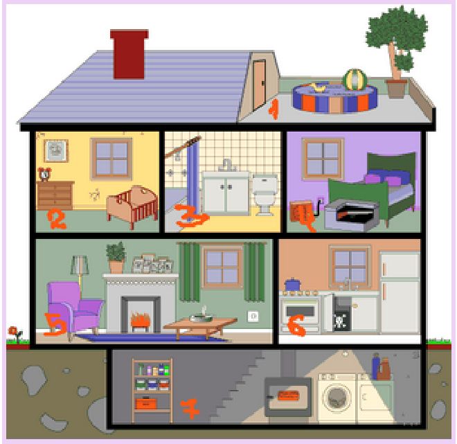 Виж тази къща. Използвай първата си реакция, за да избереш коя от тези стаи би посетил първа, преди всички останали. Обърни внимание на детайлите в нея, които те привличат (часовник, картина, саксия, басейн). Стаята, която си избрал да посетиш първа – това си ти.
