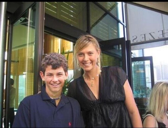 17-годишният Григор Димитров все още не се познава с днешната си приятелка Мария Шарапова, а само се е снимал с нея, но малко по-рано (снимката е на Тенис 24). Гришо и Маша обявиха официално връзката си в началото на 2013 година, след като бяха изловени от испански папараци.