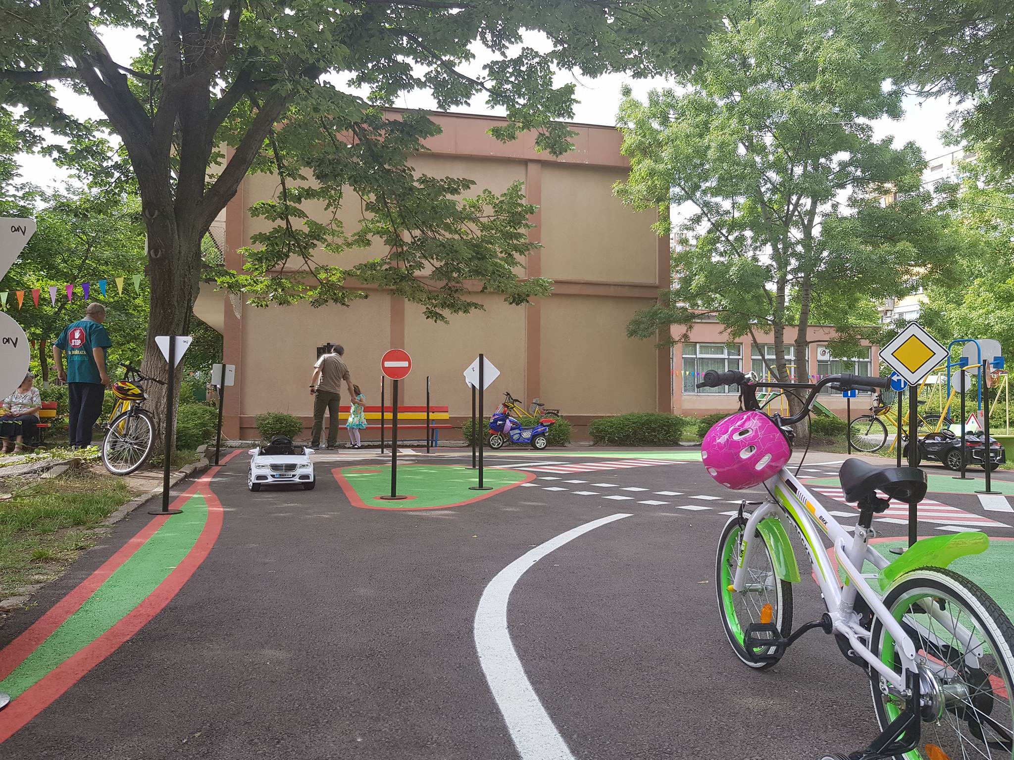 Площадката е специално създадена, за да обучи малчуганите по безопасност на движение и приложно колоездене.