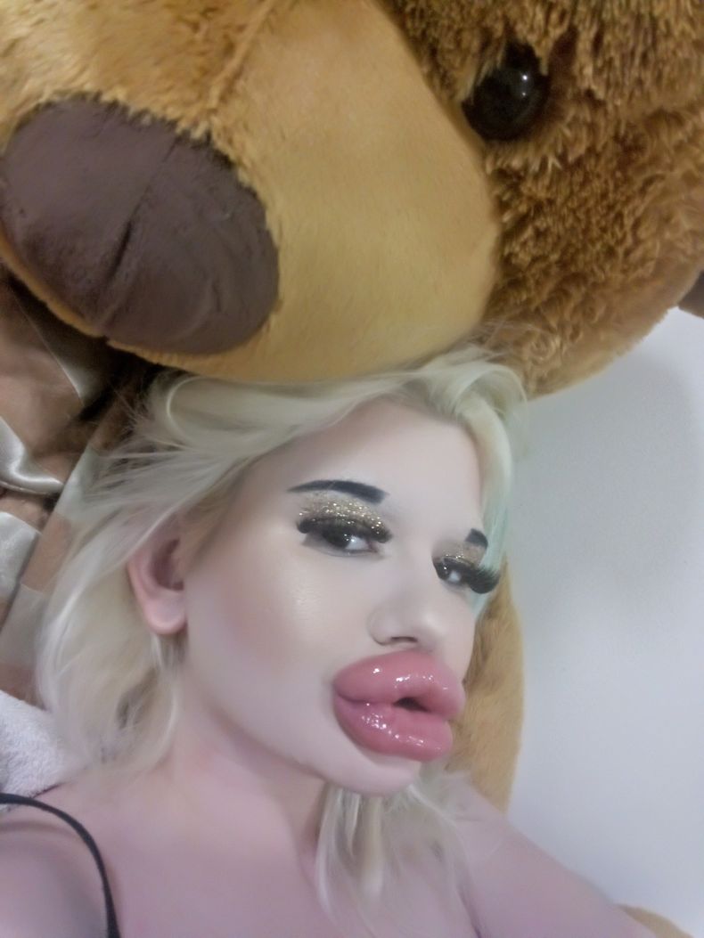 Опитите на бургазлийката Андреа Иванова да заприлича на куклата Барби вече придобиват чудвищни размери. Блондинката, която към момента е считана за жената с най-големите устни в света, ги напомна за пореден път преди дни, видя ПИК в профила й във Фейсбук.