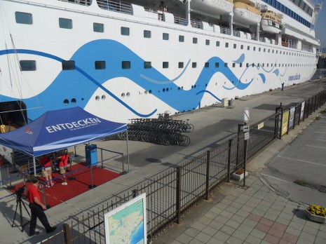 Този път впечатление направиха десетките велосипеди, които са приготвени за пасажерите, за да могат да разгледат по-бързо забележителностите на морската ни столица.