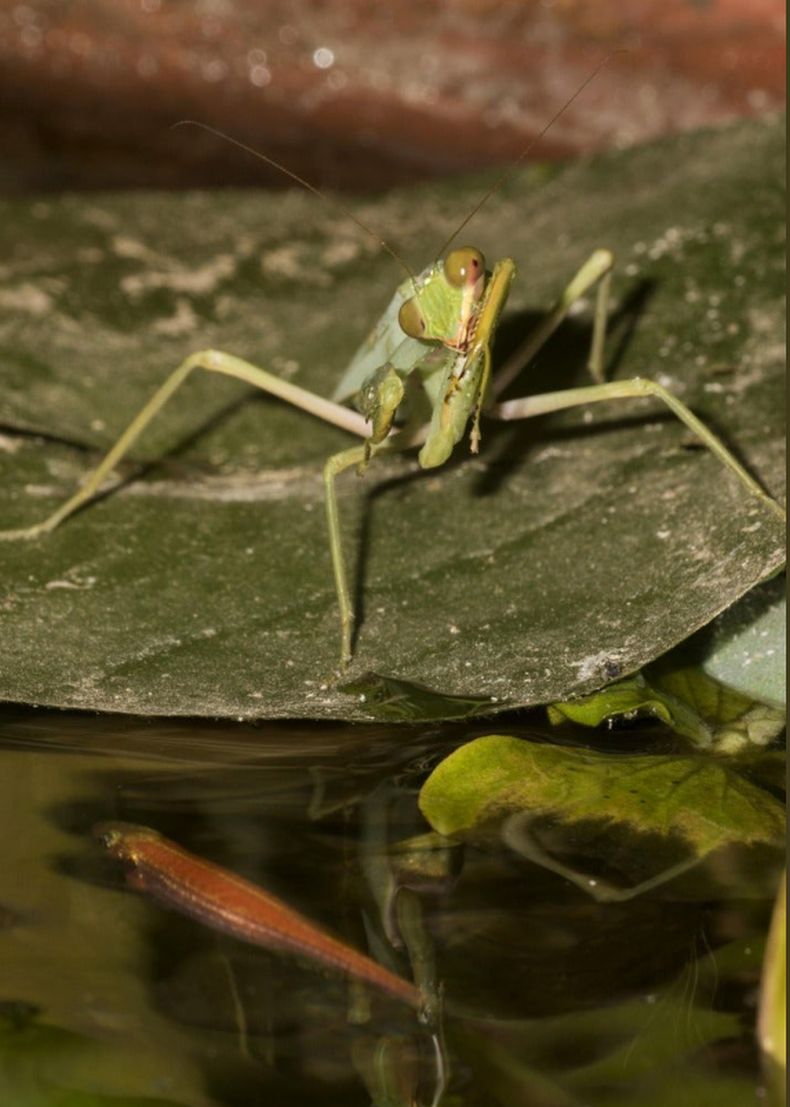 Батистон и колегите му са открили група богомолки с много необичайна диета, разследвайки случай, разказан от жител на Карнатака в Индия, който направил малка градина и езеро на покрива на къщата си.