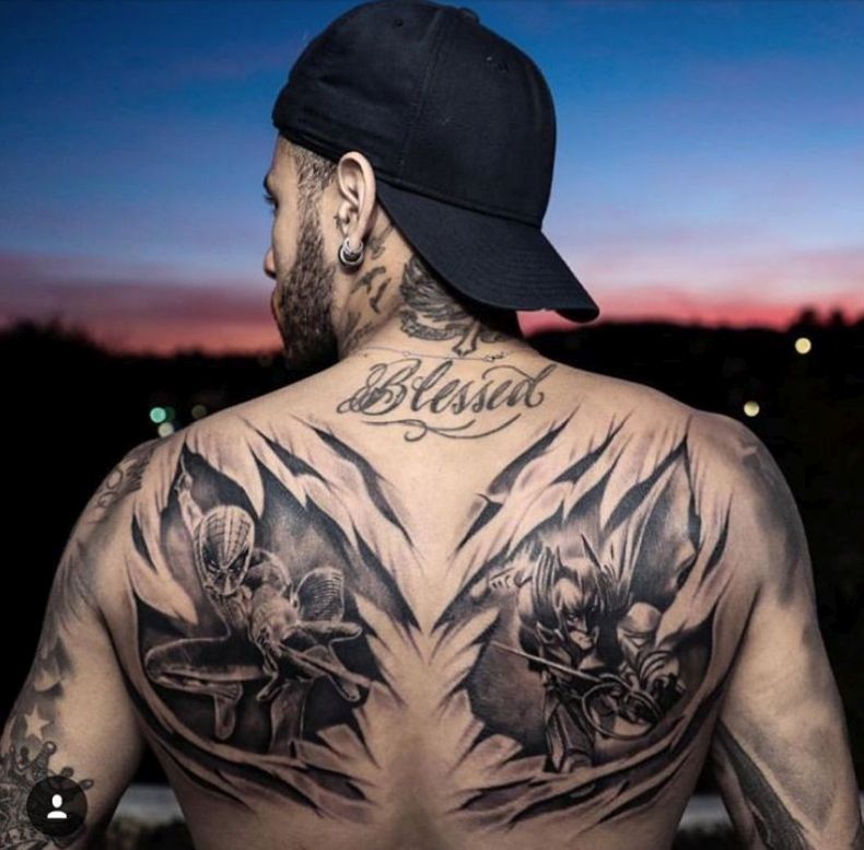 Звездата на Пари Сен Жермен Неймар се похвали с нова придобивка. Последната му татуировка заема голяма част от гърба му и показва страстта на бразилеца към супергероите от комиксите Батман и Спайдърмен.