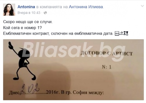 Преди седмица Тони хвърли в смут феновете си и своите колежки, като постна снимка на нов договор с продуцентска компания, без обаче да разкрива коя е тя. На договора ясно се вижда датата 02.02, когато певицата очевидно е стартирала сътрудничеството си с новия продуцент. Запознати с ексцентричния й характер коментират и че не случайно е избрала датата 2 февруари, за да започне новото начинание.