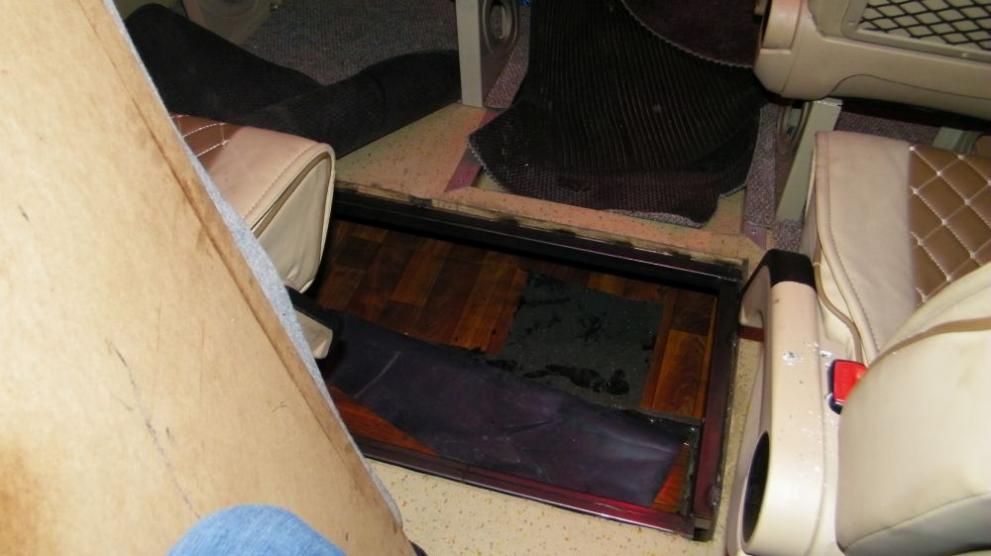 Под пода на превозното средство е открит тайник с незаконни имигранти - четирима мъже и една жена.