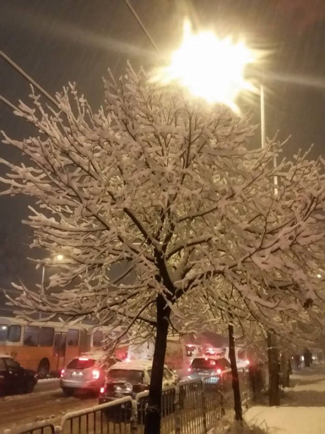 Хиляди автомобили пъплят по улиците на София заради внезапно изсипалия се сняг. Голяма част от тях са блокирани и не могат да мръднат от местата си. Друга част буксуват на всеки по-стръмен участък по улиците и булевардите, което допълнително затруднява движението. Основната причина са образувалите се преспи дори по основните пътни артерии, както и несменените летни гуми на голяма част от колите.