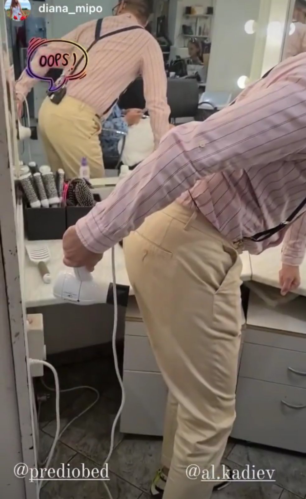 Клипчето е документирало стресова ситуация за Кадиев минути преди ефир. Изобретателният водещ се опитва да отстрани петно, появило се върху светлия му панталон малко преди да започне предаването.