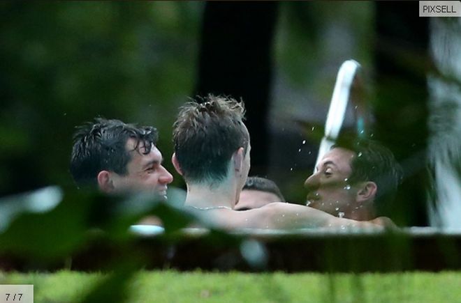 Хърватските национали релаксират чисто голи край басейна след загубата от Бразилия (папарашки снимки)