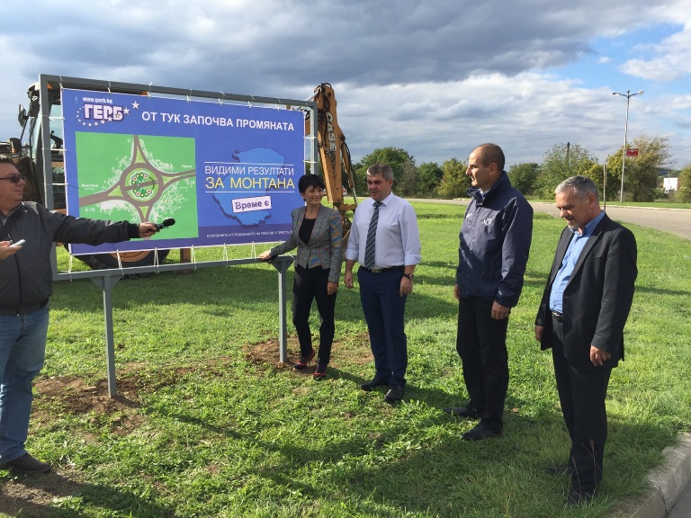 Председателят на Националния предизборен щаб на ГЕРБ и зам.-председател на партията Цветан Цветанов, заедно с кандидата на ГЕРБ за кмет на Монтана инж. Дилян Димитров и народния представител Десислава Атанасова направиха първа копка на обновяването на кръговото кръстовище на входа на град Монтана. „След четири мандата управление Монтана се нуждае от истинско реформаторско управление на успешен и доказан кмет, какъвто е Дилян Димитров - досегашен кмет на община Георги Дамянова“, заяви Цветанов. „Започваме от входа на Монтана, защото не е нормално след като сме страна - членка на Европейския съюз и искаме да привличаме инвестиции, градът да изглежда така. Трябва да има видими резултати, които да започват от входа на всеки град и на всяка една община. Убеден съм, че Дилян Димитров е човекът, който може да го направи и след 4 години ще имаме реални и видими резултати от реформаторско управление, което може да даде само Дилян“, категоричен бе зам.-председателят на ГЕРБ.