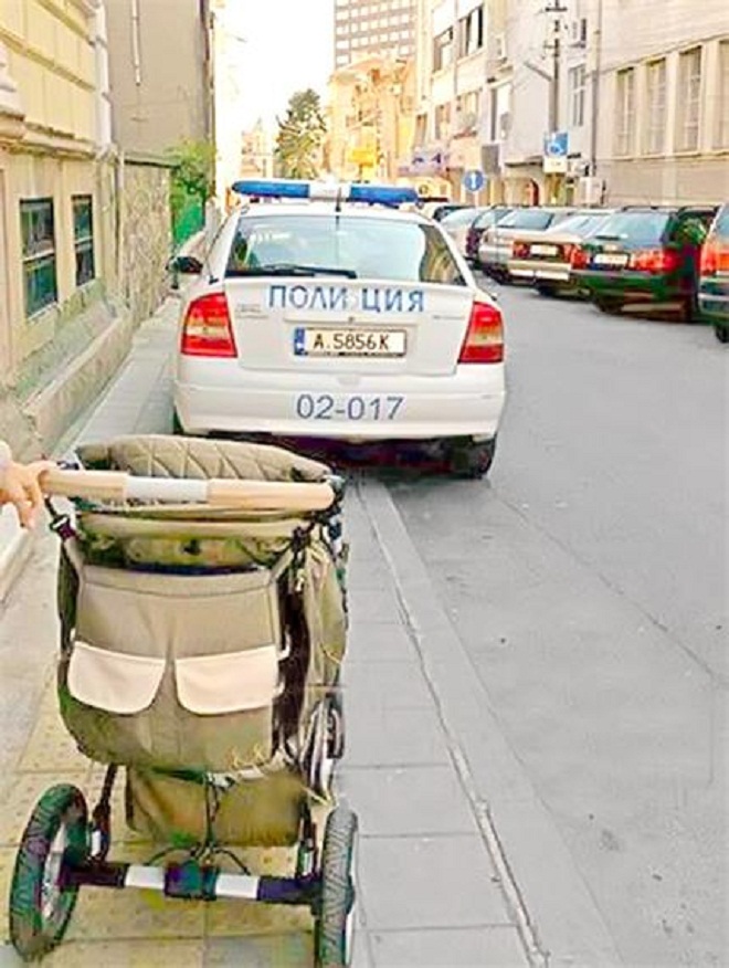 Снимка на полицейска кола, паркирана върху тротоара в центъра на Бургас, обиколи вчера социалните мрежи.