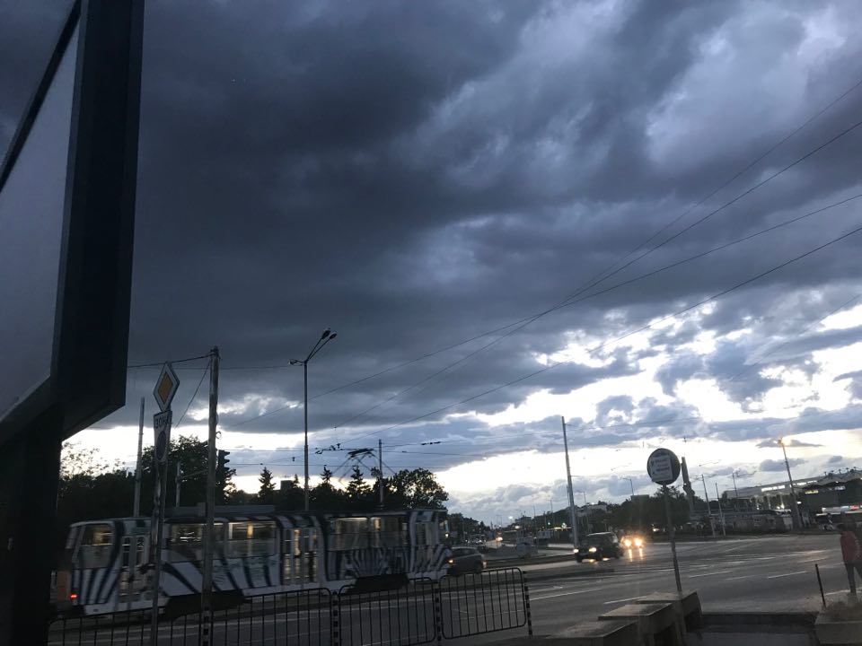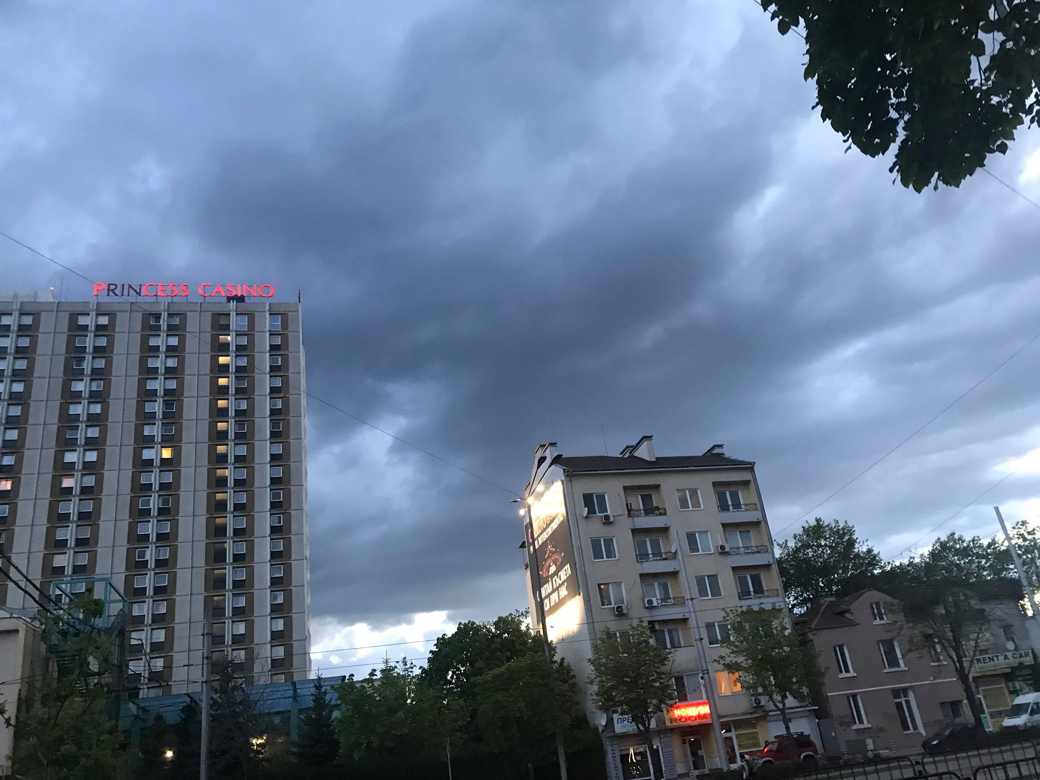 Черни облаци покриха небето над столицата. В центъра на София заваля, мощни светкавици раздраха небето. Това е поредната пролетна буря, след като в навечерието на Великден се изляха стотици литри дъжд, а в някои области на страната бе обявено бедствено положение заради извънредното количество валежи.