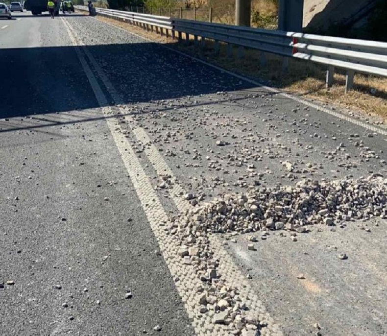 Част от каменен товар, превозван от камион е бил изсипан на пътя, след което е последвало верижно ПТП с четири леки автомобила. Щетите са само материални. Това съобщиха от пресцентъра на ОД на МВР-Пловдив.