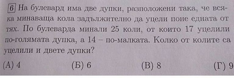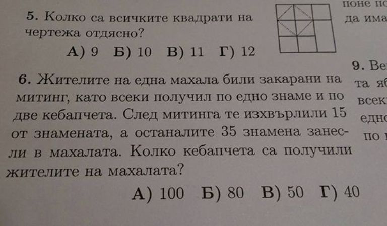 Абсурдните задачи обаче не приключват само с тази, има такива за дупките по пътищата и колко коли се успели да ги уцелят. Ако не вярвате, убедете се сами. Ако един ден детето ви се върне от училище и започне да задава странни въпроси, не се чудете от къде са му хрумнали, коментира Флагман.