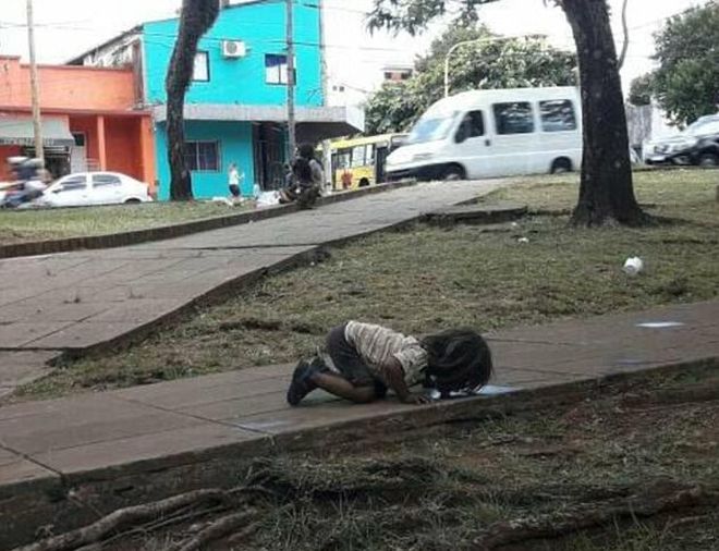 Шокираща снимка се върти в интернет от няколко дни. На нея малко дете ближе локва с вода, защото е жадно. Случката се разиграва в Аржентина, където по данни на УНИЦЕФ стотици хиляди деца бедстват, гладни и жадни, съобщава "Дейли мейл".