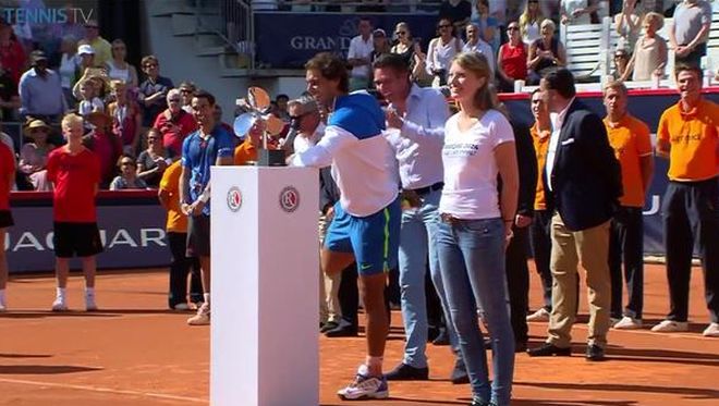 Освен на зрелищен финал, феновете на тениса в Хамбург станаха свидетели и на нетрадиционна случка по време на официалната церемония по награждаването на двамата финалисти.
