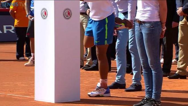След като получи отличието си, шампионът Рафаел Надал застана зад микрофона и започна да говори традиционната реч, в която благодари на организатори, доброволци, спонсори и всички, свързани с турнира.