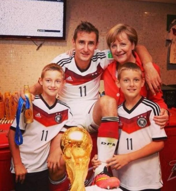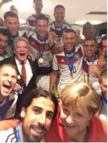 Меркел се включи в празненствата и се снима с някои от футболистите, както и с целия отбор.