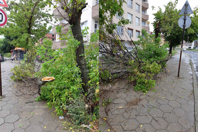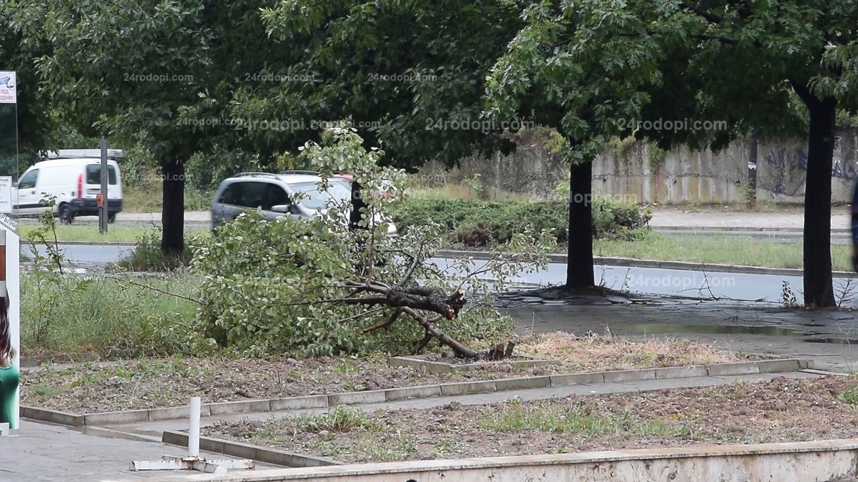 Силният вятър повали още едно дърво на булевард "Христо Ботев" във "Възрожденци". За счупени големи клони сигнали има и в централната част на града.