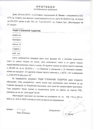 Яне Янев приложи и копие от приемо-предавателния протокол, който е получил от прокуратурата при внасянето на сигнала: