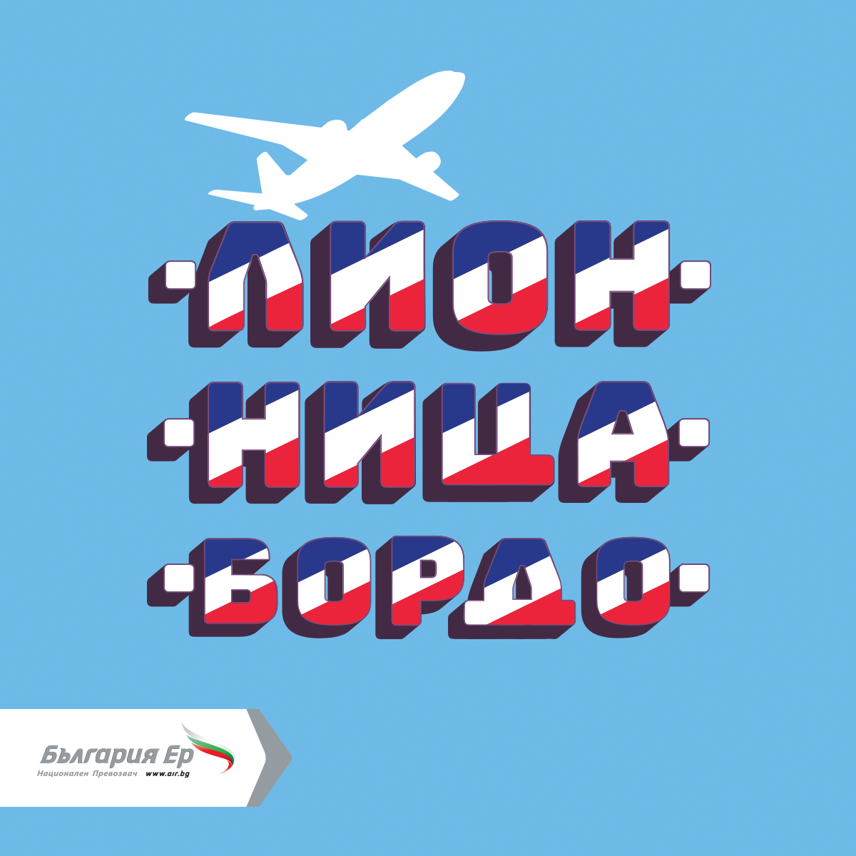 Националният превозвач „България Ер“ разширява мрежата си от дестинации с полети до три от най-атрактивните градове в Южна Франция. Благодарение на нов код шеър договор, който авиокомпанията сключи с Air France, пътниците вече могат да стигнат бързо и удобно от София до втория по големина френски град Лион, до пристанищния град Бордо, който е и сред културните паметници на Франция, както и до центъра на Френската ривиера – Ница.