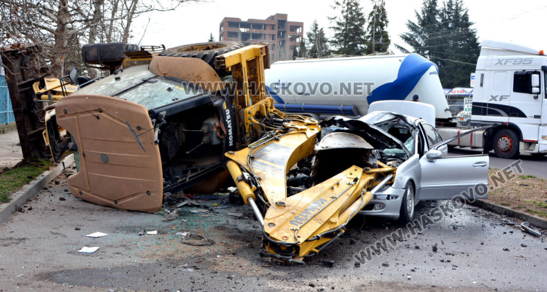 Водачът на многофункционалния багер заредил на близката бензиностанция и излизал на главния път. Точно в този момент от дясната му страна идвал Мерцедеса, който се е ударил в него.